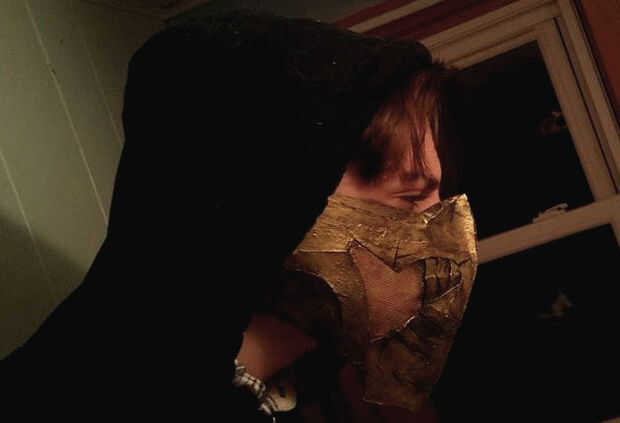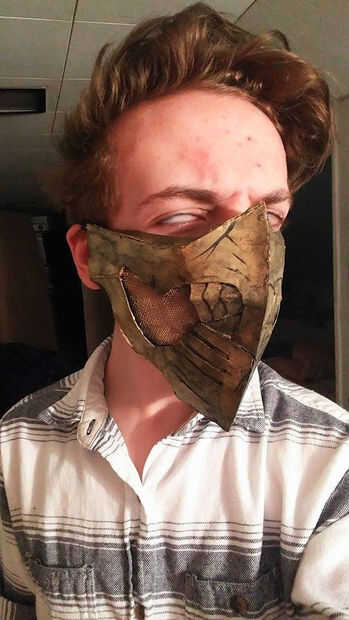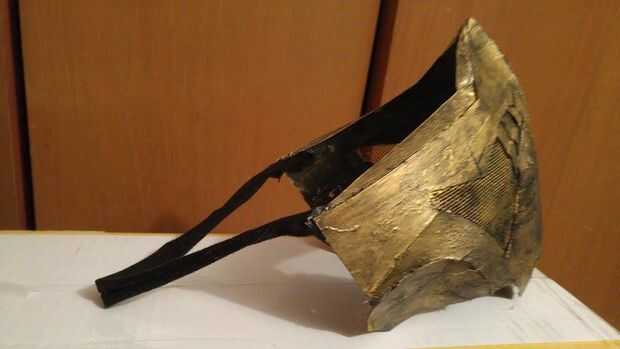 Para terminar, deje la mascarilla secar y añadir una simple correa de tela negra para ir sobre las orejas.
