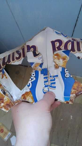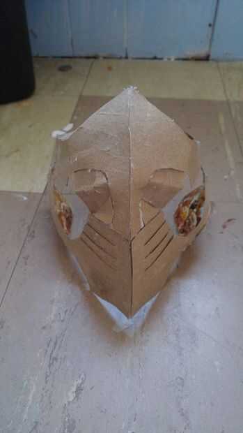Puedes entonces cuidadosamente abrir la máscara (ver en imagen dos) y hacer una costura generosa de pegamento caliente corriendo por donde se unen las piezas, y debe dejarse con una máscara protectora completa, como se ve en la imagen tres.