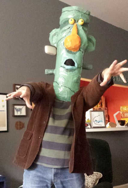 He añadido unos ojos de pelota de ping-pong. He probado algunas más grandes, los adornos navideños de papel maché de Michaels, pero eran demasiado grandes para mi gusto. Pintar los ojos fue un poco difícil; Terminé los alancear en cuchillos exacto para que no ruedan lejos. Sólo está atados a la cabeza con pegamento caliente. Para una más realista, aspecto de tipo Muppet, los ojos debemos ser un poquito bizco, pero quería doofy, protrusión efecto wall-eyed en su lugar. Sólo parecía más divertido para mí. Probablemente hubiera sido más fácil pegar los ojos antes de pintar en las pupilas, pero no creo que en el momento.