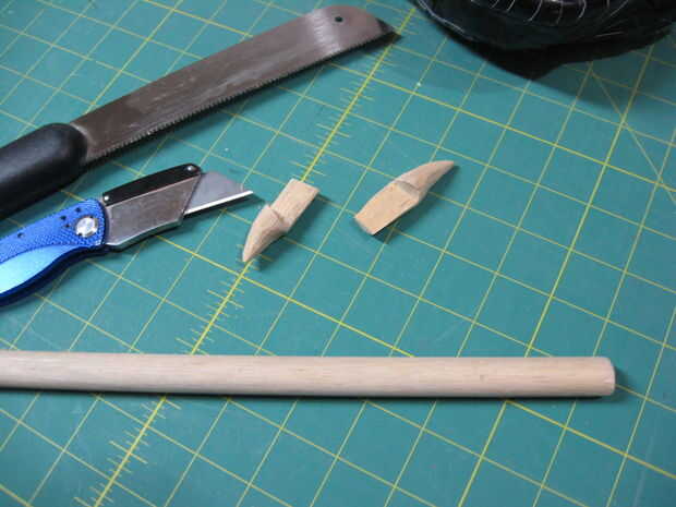 Los dientes son piezas de espiga que tallada con un cuchillo y pintados de blanco.