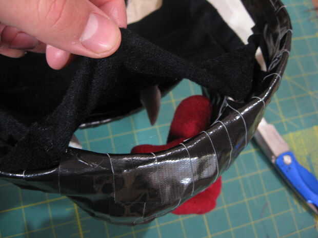 La lengua está hecha de algún paño grueso y suave de chatarra. Me cosieron dos rectángulos, curvar un extremo de la punta redondeada de la lengua y deja el otro extremo abierto. Esto se convirtió derecho-lado-hacia fuera, y se agrega una línea de puntos por la mitad.