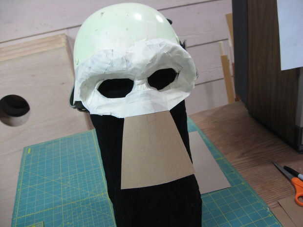 Finalmente!Durante 30 años he estado haciendo los trajes para mis hijos y sus amigos. Ahora puedo hacer uno yo mismo.Paso 1: La base de la máscara es carnicero papel y cinta adhesiva. Este fue formado sobre un bloque de peluca (cabeza del maniquí). E