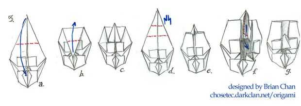 b. doblar a lo largo de la parte superior de las aletas cuadradas.