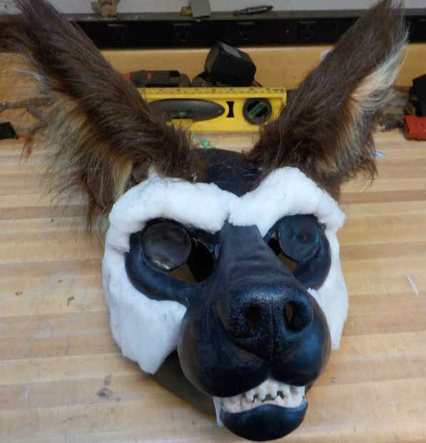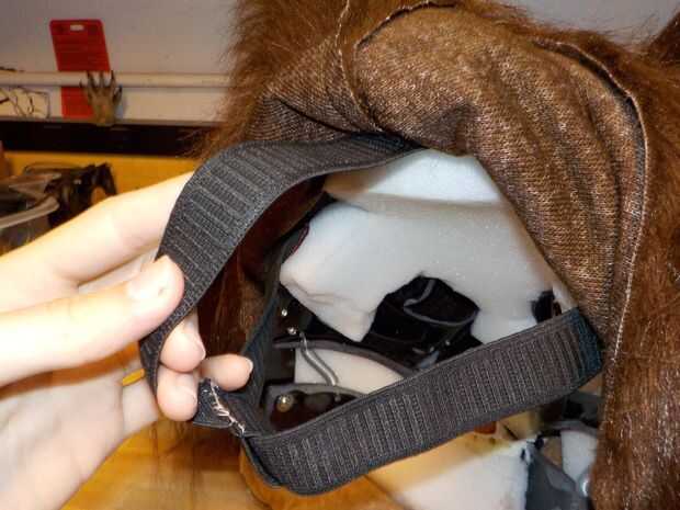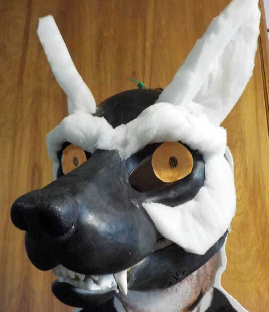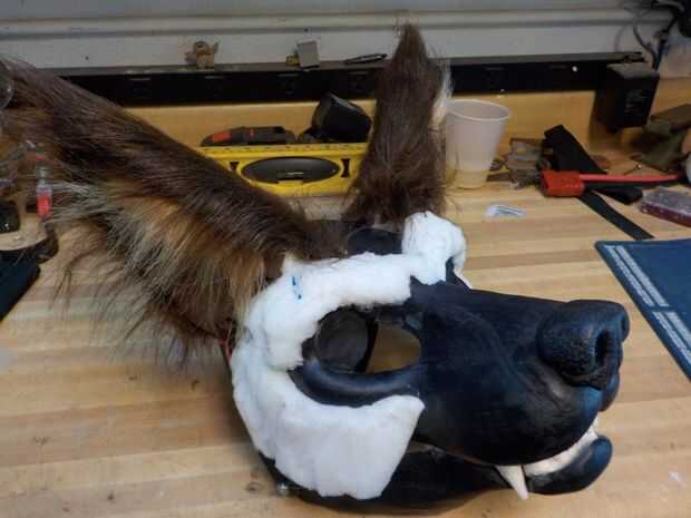 Después de toda la espuma y los dientes fueron asegurados en su lugar, el siguiente paso fue comenzar añadir pieles a los oídos. Esto no era demasiado difícil, en que la tela era sólo forma y cosida a mano en lugar.
