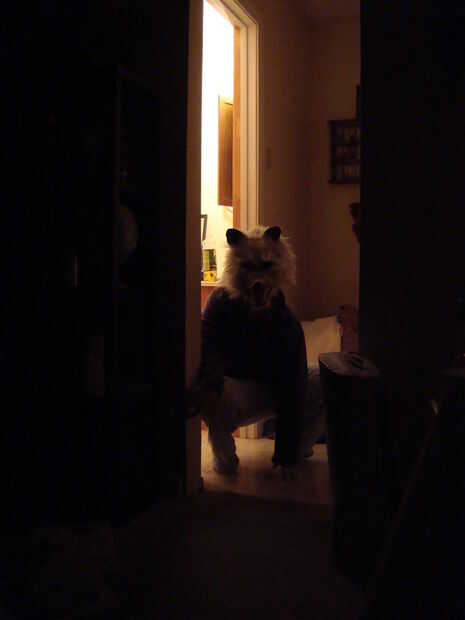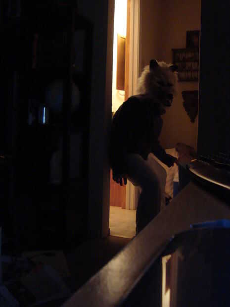 Por favor disculpa mi camisa de Pascua!!! Sé que parece realmente extraño con los hombre lobo scary máscara jajaja. Voy a estar trabajando en un traje de cuerpo completo para ir con este tiempo. Pronto actualizaré con más fotos!