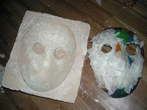 primer paso es conseguir viejo cartón y cortarlo en tiras y pedacitos de su elección. Los más pequeños se cortan, el detalle más es posible añadir a la forma general. Empezar por la cola una banda alrededor de su cabeza para adaptarse a sus dimension