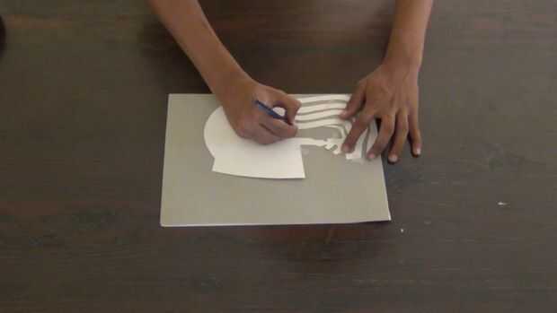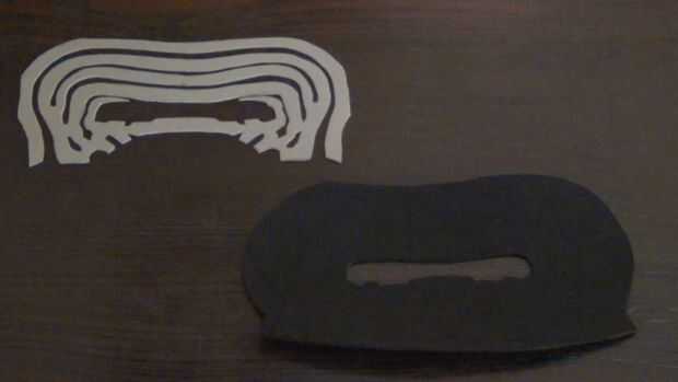 Ahora, Súbete al patrón de la máscara. Cortar este patrón en una hoja diferente de espuma del arte, no lo utilizamos en el paso anterior. No pegue el patrón en la máscara todavía. Todavía tienen que forma la máscara antes de añadir los detalles.
