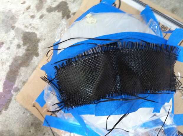 5. corte un pedazo de cinta de carbón - use la cinta azul para sostener el borde de carbón de deshilachado.