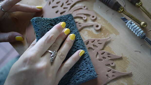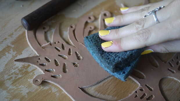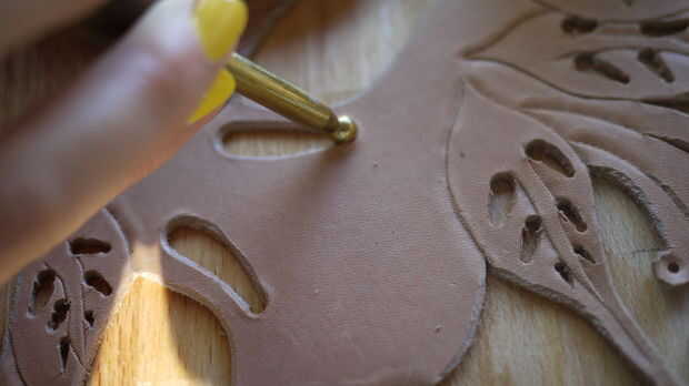 Utilice una herramienta de bola para suavizar los bordes agudos y mojar el cuero hacia abajo para realzar.