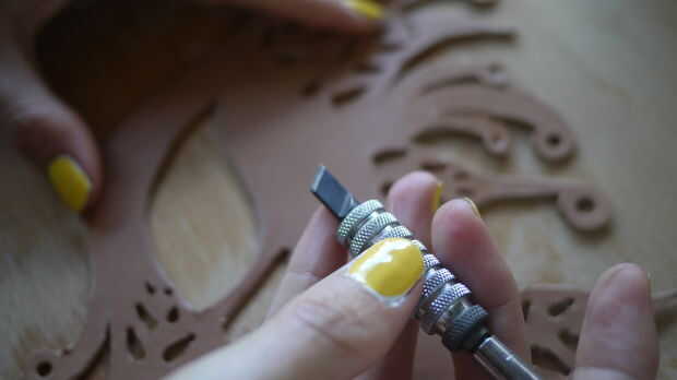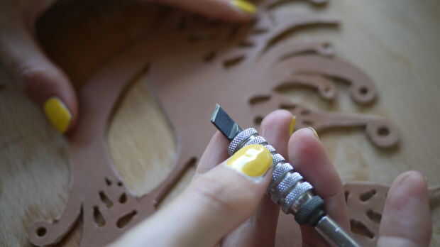 Un cuchillo del eslabón giratorio es ideal para definir las líneas de su diseño. Luego puede agregar algunas herramientas a prensa y detalle de la piel.