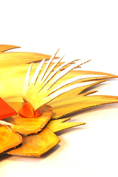 primer paso es conseguir viejo cartón y cortarlo en tiras y pedacitos de su elección. Los más pequeños se cortan, el detalle más es posible añadir a la forma general. Empezar por la cola una banda alrededor de su cabeza para adaptarse a sus dimension