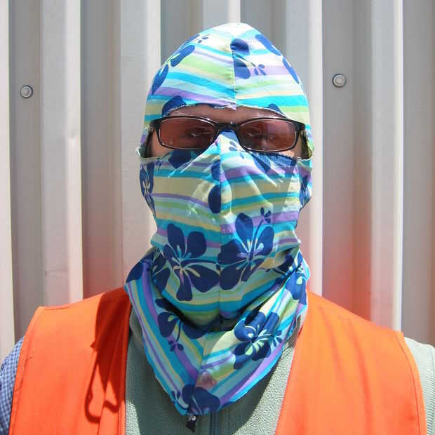 Así que hice un parasol de lycra flores. Como el pasamontañas, pero para protegerse del sol en lugar de viento frío.