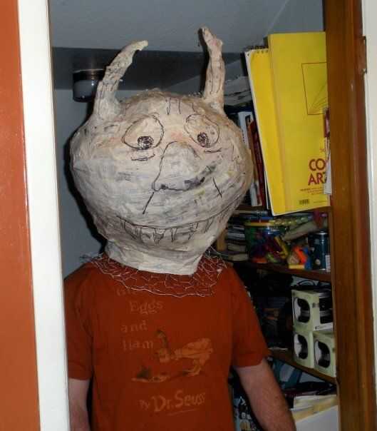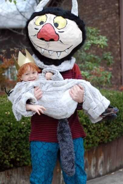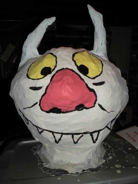 Como somos grandes fans del libro, decidimos que sería un "Wild Thing" y mi hijo sería "Max" para Halloween este año. El traje de "Max" fue con sutura manual y adaptado de un patrón, así como el aspecto de la demanda en la reciente adaptación cinematográfica. La cabeza fue modelada desde el arte en el libro, en lugar de las criaturas de muppet-como en la película. La idea vino a mí para crear la cabeza del alambre y papel maché, piel sintética, pintura de acrílico y marcador.
