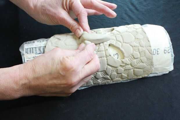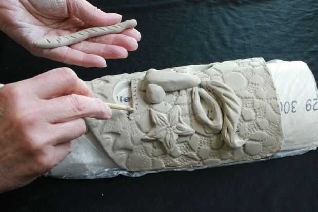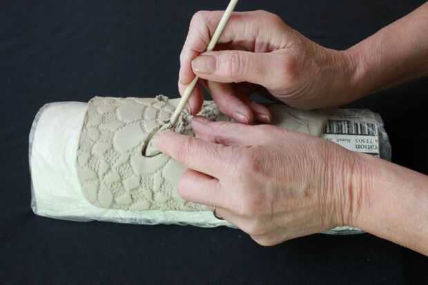 Añadir otras características de la arcilla en una serpiente y rayar líneas en ambas piezas a unir.
