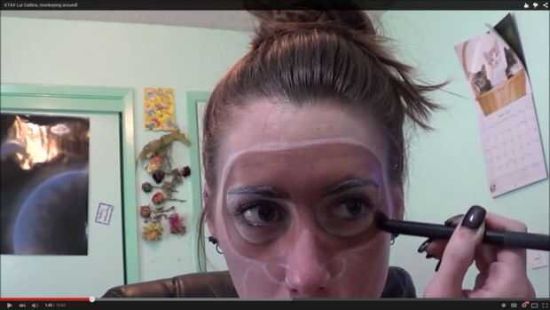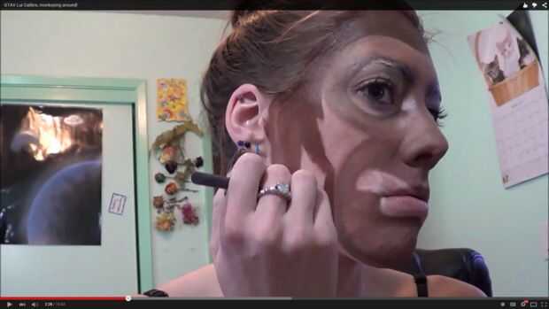 Máscara de cerdo en línea GTAV, inspirada por yo soy gato salvaje.Paso 1: Ir rosa De partida pinté mi cara luz color de rosa, entonces agarré un lápiz de ojos blanco y esbozado mi mirada.Paso 2: Color de rosa caliente Entonces tomó un paño removedor