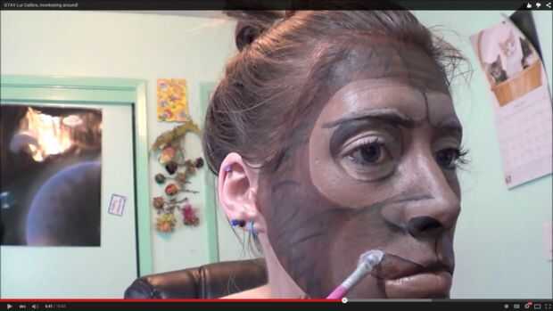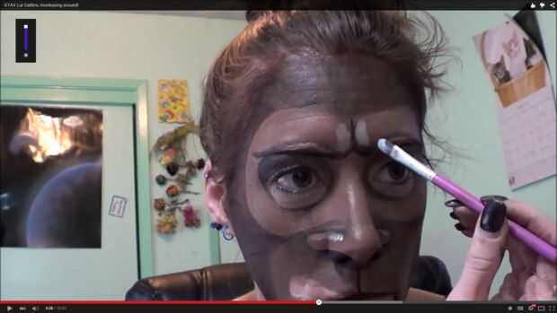 Máscara de cerdo en línea GTAV, inspirada por yo soy gato salvaje.Paso 1: Ir rosa De partida pinté mi cara luz color de rosa, entonces agarré un lápiz de ojos blanco y esbozado mi mirada.Paso 2: Color de rosa caliente Entonces tomó un paño removedor