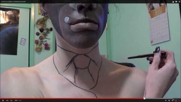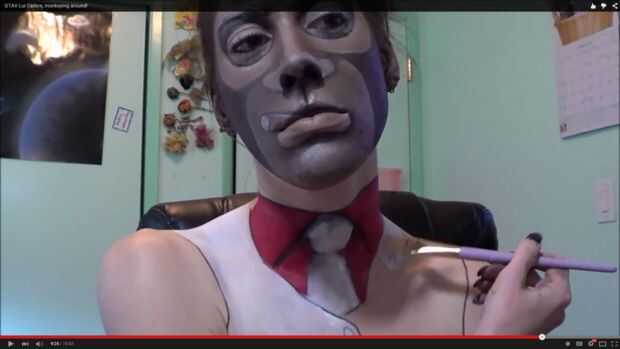 Máscara de cerdo en línea GTAV, inspirada por yo soy gato salvaje.Paso 1: Ir rosa De partida pinté mi cara luz color de rosa, entonces agarré un lápiz de ojos blanco y esbozado mi mirada.Paso 2: Color de rosa caliente Entonces tomó un paño removedor