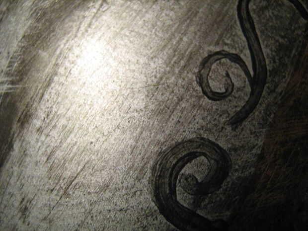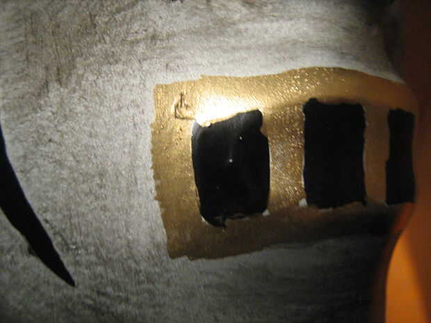 Por lo que no resultan bastante como yo esperaba, pero con una técnica que aprendí al hacer utilería y escenografía para el teatro de mi escuela secundaria llamada "cepillado en seco" (usando un pincel con apenas pintura en él) he podido un poco la edad y que se vea como lo había sido a través de batallas un par.
