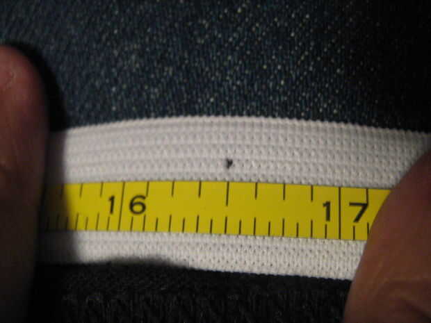Ahora que tengo, tengo justo cortar un pedazo de elástico mide 16,5" y adjuntarlo. Después de eso, sólo necesitaré Coloque otra tira en la parte superior y ejecutarlo a la pieza horizontal de elástico y coser en su lugar.