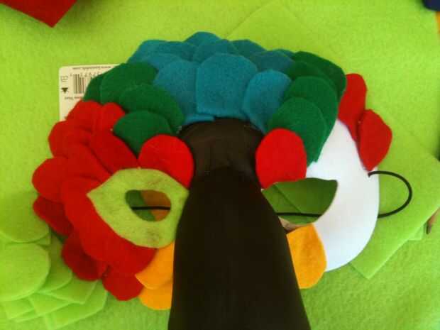 Poner el pegamento en la máscara, no la pluma del fieltro. Así, hay menos posibilidades de la proyección de la cola. Aunque, si tienes fieltro lo suficientemente gruesa que no debería ser un problema.