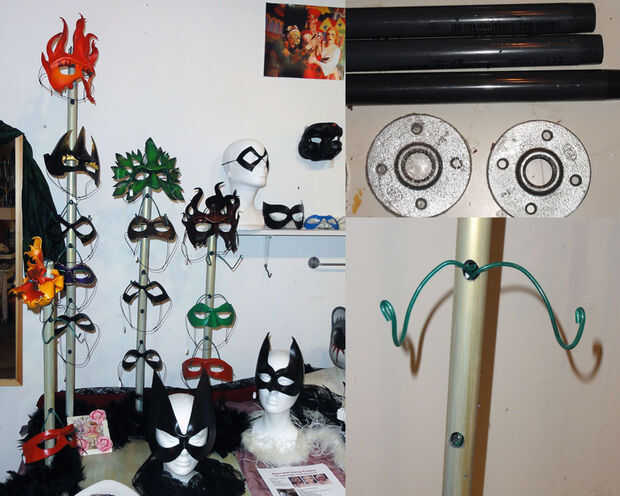 Visualización de máscaras es un desafío. No colgar en una pared o peg board. Muestra cabeza peluca es engorroso si viajas para vender en una feria de arte.