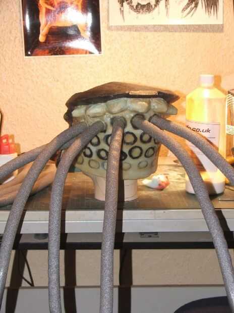 Los temores se hacen de 'barras de soporte', una barra de espuma utilizada en la construcción. Los extremos se calientan un poco y luego para formar las formas cónicas. Tubería de cobre tubería granos fueron agregados, éstos ayudan a las barras de soporte para doblar y colgar correctamente.