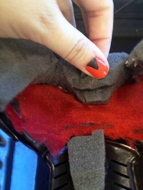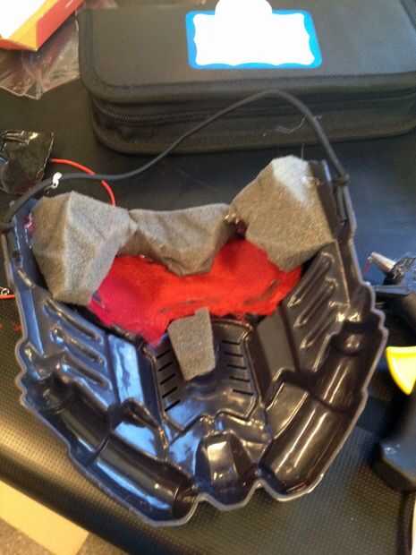 Tenía un trozo de espuma mentir alrededor de algún electrónico que fue enviado, y te animo a usar lo que tiene en la mano o puede conseguir barato. I cortar un rectángulo de 2-3" el ancho de la máscara, pega un extremo en su lugar y utiliza un cuchillo para cortar los agujeros del ojo. Trató de la máscara y terminó por hacer algunos cortes en diagonal para obtener un mejor ajuste y agregado una pieza para proteger la punta de mi nariz. Usted no tiene que preocuparse por este aspecto aseado porque serás la única persona que lo ve.