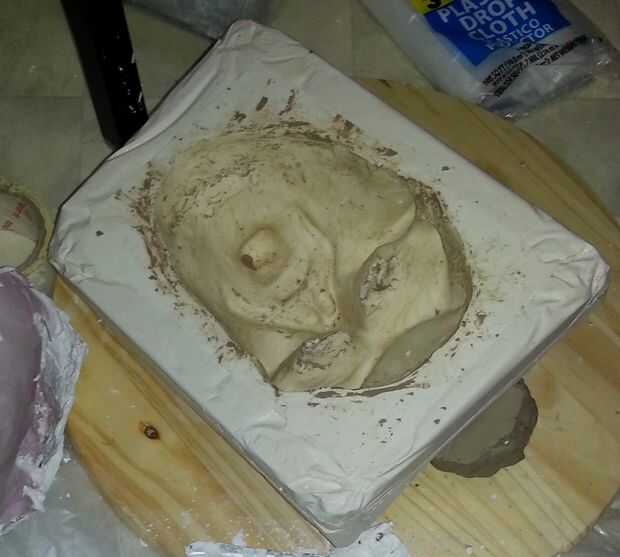 Consejo: La idea es contar con suficiente material fuera de la escultura para apoyar la silicona durante el fundido final yeso es muy barato, vaya chiflado. Voy a tener 5 libras más el año próximo.