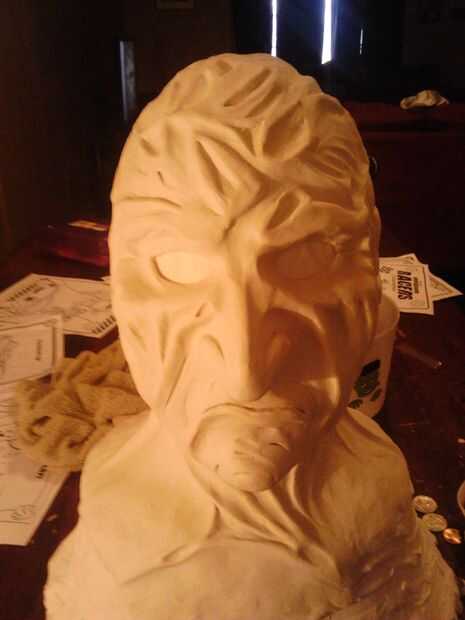 Ahora puedes ver cómo fue su molde. Si tiene una gran costura, recorte hacia abajo o incluso arena con una dremel. Recorte hacia fuera los ojos, cuello, boca, etc..