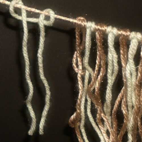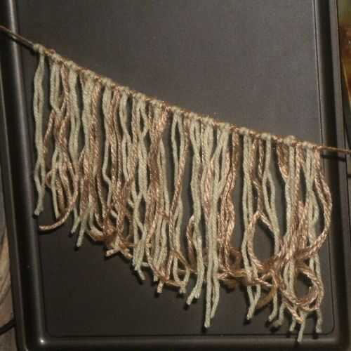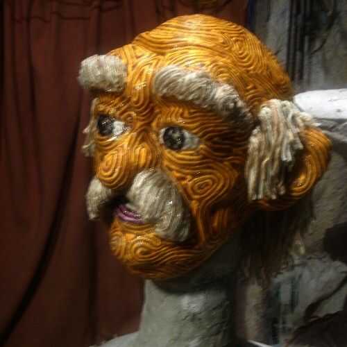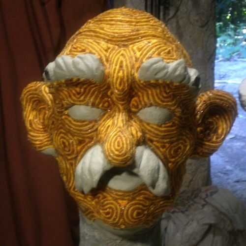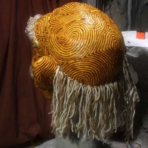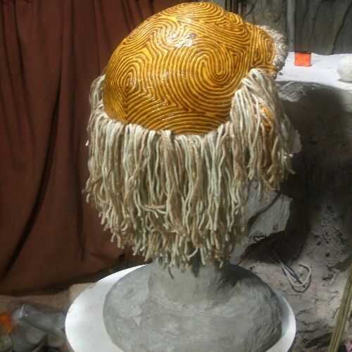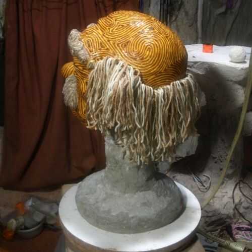Ya que quería el pelo en las cejas bigote y ojos bajo control, he esculpido las masas de pelo y luego encolar el hilo sobre ellos. El pelo en la parte trasera está flojo y ayuda a cubre el cuello del portador de la máscara. El pelo en la espalda se pone encendido en unidades múltiples-pelo. Después de atar los pelos a un hilo central, se pegan abajo como una unidad. Ahorra mucho tiempo.