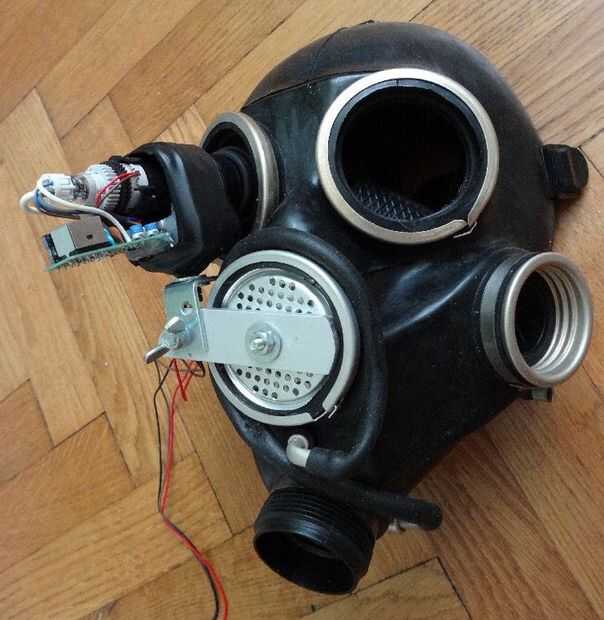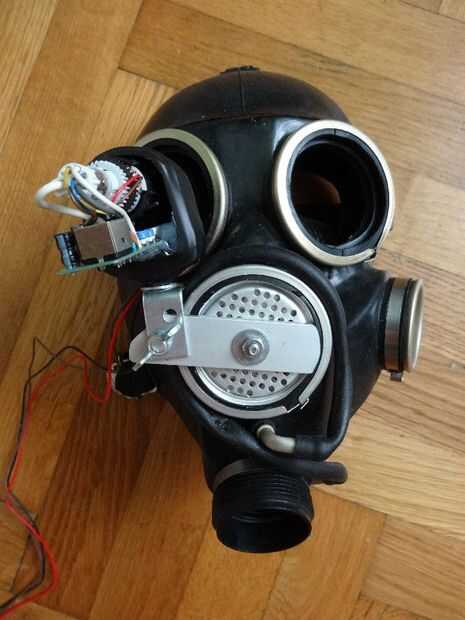 Para que parezca una máscara de olvido se llevó una máscara de gas viejo comprada en ebay (desde Lituania hasta donde recuerdo). He quitado las gafas y había montado en la cubierta de CRT delante de un ojo. Para ser más flexible en la lucha contra, el CRT puede girarse hacia el exterior para una mejor vista durante el día...