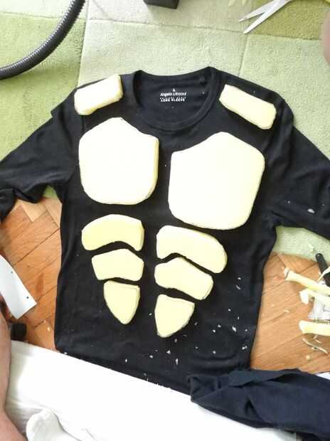 Además, usé una camisa negra y añadido algunos protectores (espuma recubierta de textil flexible) para la terminación de mi traje.