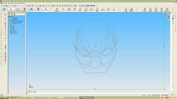 En la parte de construcción uso la geometría que he creado con el software de vectores como mi dibujo original, base. SolidWorks me permite hacer este dibujo visible o invisible siempre que sea necesario durante todo el proceso. Esto me puede ayudar a mantener todo en mi mente.