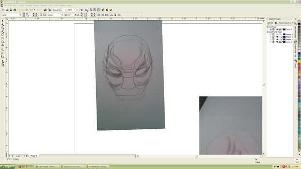 Una vez que tenemos las imágenes que quiero mi modelo de la base, utilizo un programa de gráficos vectoriales para detallar la imagen y conseguir algunos lineamientos básicos de las características más importantes de la parte. Utilizo CorelDraw para mis gráficos vectoriales. Otra vez hay nuevos programas con características mejores, pero he estado pegando con lo que sé. Tomo eso geometría básica en el programa de dibujo vectorial y exporto como arte de línea 2D que SolidWorks puede importar. Normalmente utilizo un formato DXF para este paso.