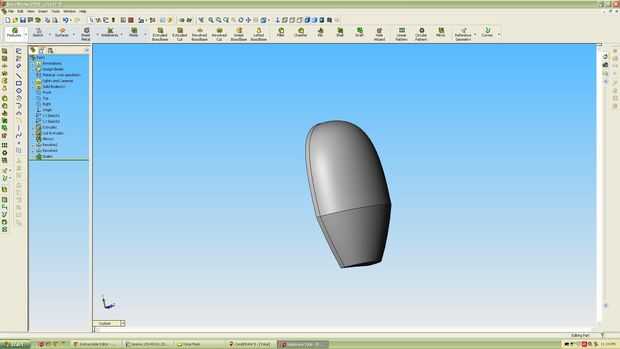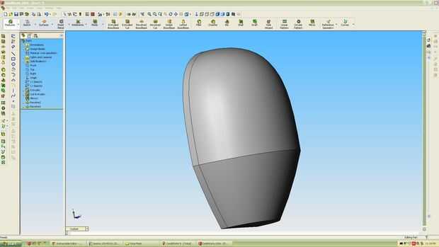 Desde esa base hice lo que SolidWorks llama una protuberancia giró y salió con una función de redondeo coincide con el contorno de la máscara. Mirando atrás mis imágenes .jpeg la característica completamente redonda no parecía razón usé la función de la escala. Con esto yo sólo escala lo en la frente para dirección y hasta la izquierda y abajo dirección y derecho a la izquierda en dirección a como estaban. Esto parecía un poco más adecuado a lo que veo en las imágenes.