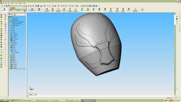 Al igual que con la nariz, todo el resto de las funciones se crean de detrás plano, superficie y sacado hacia fuera sobre la superficie superior de la máscara. A veces intentan hacer todas las funciones a la vez. A veces me encuentro haciendo un paso adelante y dos pasos atrás con esto. Lo que generalmente vuelvo a es crear una función en un momento y asegurándose de que la geometría funciona bien. Los errores que pueden ser muy desperdiciador de tiempo para corregir. La geometría más hay en cada dibujo, cuanto más tiempo tarda en encontrar los errores.
