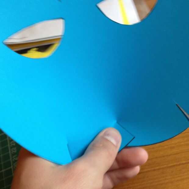 Una vez tienes la plantilla de la máscara en la tarjeta ya sea a través de imprimir o basándose en corte a, corte las 3 líneas en la parte superior e inferior (6 en total)