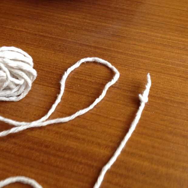 Cortar por la mitad y hacer un nudo en un extremo de cada uno.