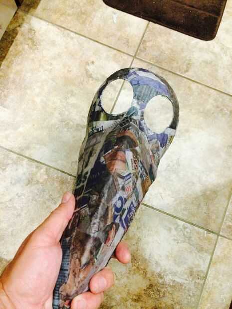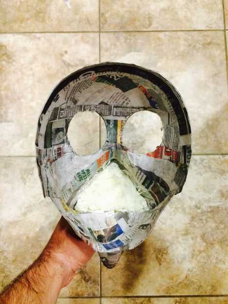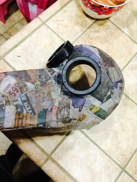A continuación, utilizan algunos accesorios de tuberías de plástico negro (P trampa accesorios) que adquirí de Home Depot. I Desenroscar las dos piezas y colocar los accesorios masculinos en el nivel adecuado para los ojos en la cara de la máscara. Utilizando un rotulador dibujó alrededor de guarnición y luego utilizar mi herramienta Dremel para cortar las aberturas de ojo (fotos no incluidos, perdón por eso). Me aseguré que los trozos queden bien y luego se retira.