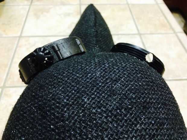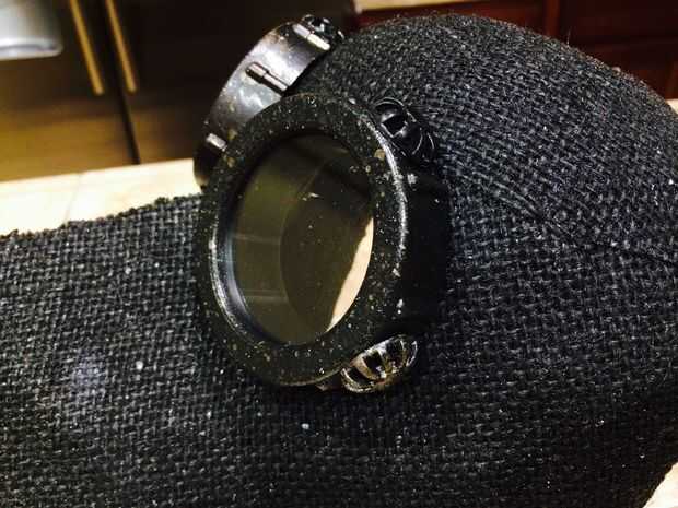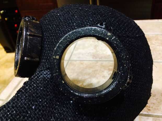 Una vez que todo estaba seco reuní los ojos gafas protectoras en la máscara. Me di cuenta de que con la mascara (sólo por unos momentos) las lentes comenzaron a empañarse. Así que decidí perforar algunos agujeros en los bordes de los tubos de p para que puedan ventilar. Entonces tomé las piezas pequeño respiradero que vinieron en las gafas de Home Depot y les cortó, pintaron para emparejar y ajustaron en su lugar.