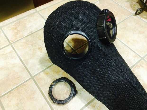 Esta máscara se basa en la máscara de pico de plaga de TF2, pero es buena para cualquier disfraz de Doctor de la plaga.Aquí es lo que necesitarás:-Piel (grosor variable. No sabes las medidas técnicas, revisar las fotos. Utiliza un material algo grues