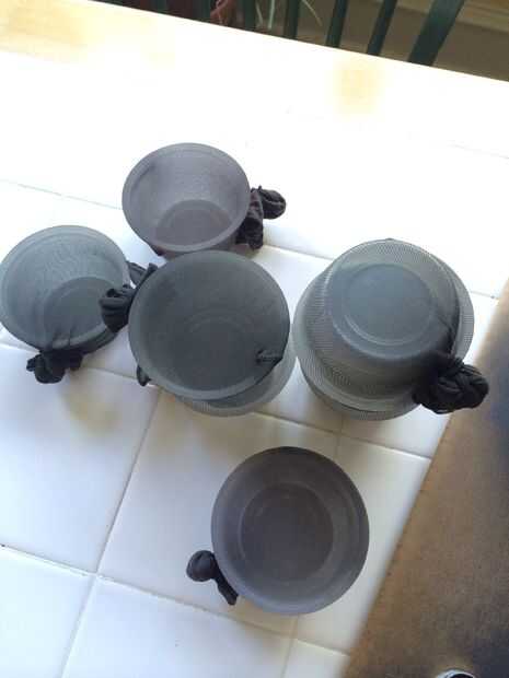 Corte panty hoes en tiras de aproximadamente cuatro pulgadas de largo (varían según el tamaño del envase). Se extienden las azadas en el envase. Tome los extremos de exceso y usar una banda elástica para envolver para arriba como si se tratara un moño con el pelo.
