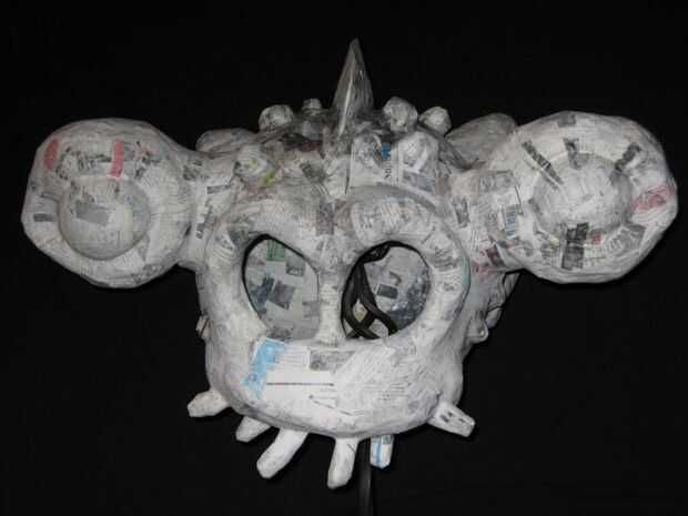 Y eso es todo! Deje que la máscara se seque, luego sentir alrededor de puntos débiles reforzar la necesidad. Una vez satisfecha en la integridad estructural del monstruo, dio la máscara de una capa de imprimación blanca y lo envió a los niños, que tenían un buen cambio de imagen en la mente...