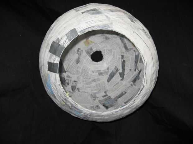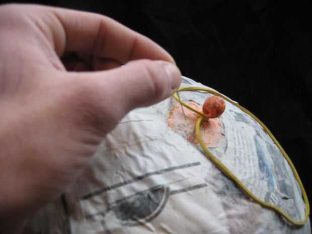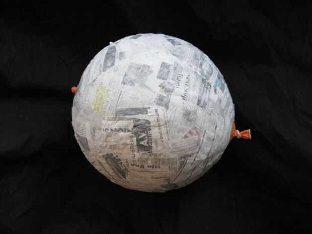 Usted querrá construir varias capas completas sobre el globo (dejando aberturas en ambos extremos, donde la goma y el nudo poke a través) y deja que la superficie sea muy seco. Usted debe estar seguro de que la cáscara de papel puede contener su propia forma antes de la extracción del globo! En mi experiencia, si tienes el globo cubierto de papel de la goma, y el globo no inmediatamente se extienden hasta el suelo debido a su peso, entonces no le has puesto suficiente papel en él. Presione hacia abajo sobre la superficie del balón al lado del nudo y para sentir la fuerza de la carcasa por sí mismo.