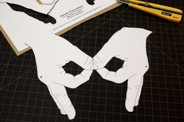 Cortar la máscara con cualquier cosa puedes tener tijeras, cuchillo, cuchillo Xacto, navaja, cuchillo de carnicero, cortador del laser, etc.... Instructivo usuario, bowmaster, recomienda el uso de una Katana. Estoy de acuerdo ;/