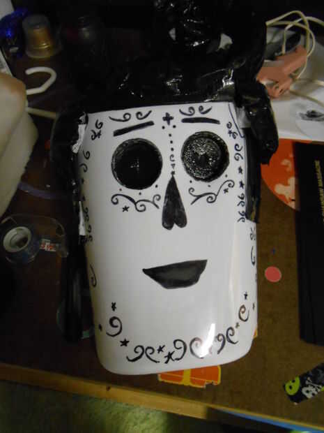 siempre me ha encantado el look del día de las máscaras muertas así que decidí hacer uno que se vería bastante agradable para colgar en una pared pero todavía lo suficientemente rígido para posiblemente usar con un traje.Materiales:Pegamento blanco (