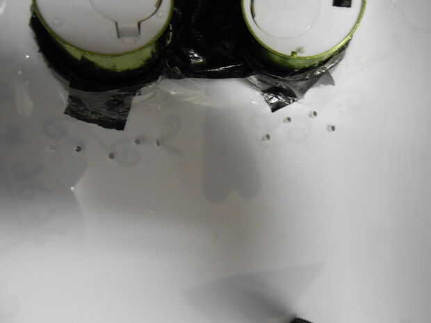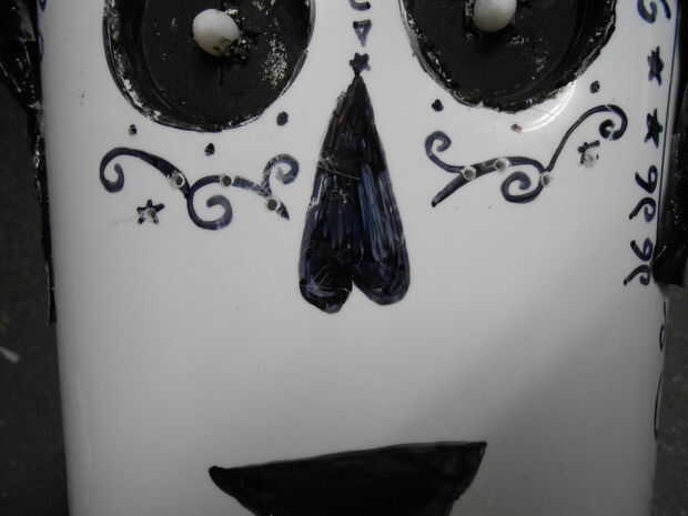 Usando un taladro o un punzón, hacer unos agujeros debajo de los ojos. Es hacer agujeros donde la filigrana diseño ayudará a camuflar los agujeros. Van sobre los agujeros con el marcador a camuflaje para ellos. También, con el marcador, toque cualquier parte del diseño que puede haber sido rascada.