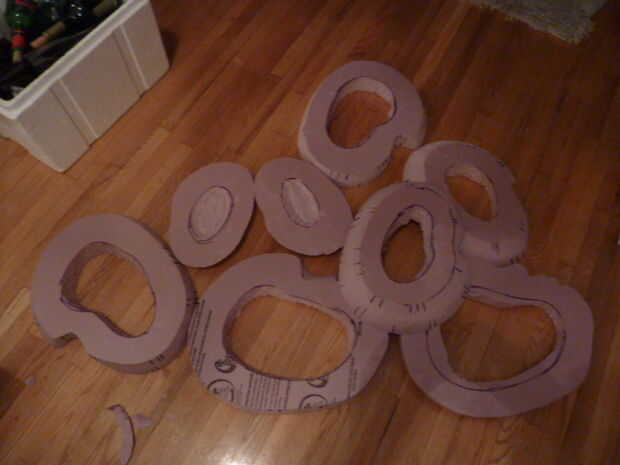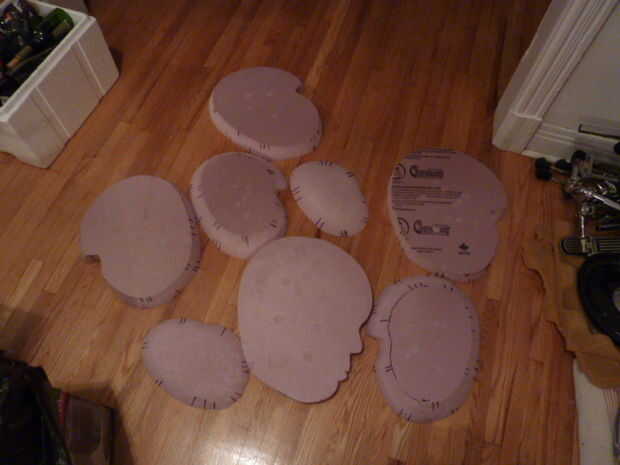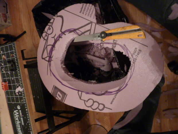 Luego necesita hueco de cada losa. Utilizando y cuchilla Olfa, recortar la forma de la parte más pequeña: como cada losa ligeramente cónicos como progresa a la mejilla de la cabeza, un lado de la forma será más pequeño que el otro. Luego debe tallar el interior para formar una línea diagonal de la huella más pequeña a la más grande. Ver la última foto de referencia.