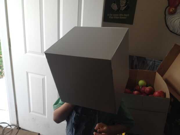 No pierdo mucho tiempo medir nada exacto, básicamente tomé una hoja de papel de tamaño estándar (8.5 "x 11") y se utiliza para marcar un cuadrado de 11" en el Consejo de núcleo de espuma. En última instancia, usted tendrá 5 corte de lados (todos alrededor de su cabeza) y otra para en la parte superior. Los 4 que van alrededor de su cabeza tienen todos los lados que excepto 1 corte en ángulos de 45 grados. La pieza superior necesita todos los lados con un ángulo de 45 grados. Lo hice trazando todas las piezas de lado a lo largo de la parte inferior de la Junta de cartón pluma que pude salir de ese borde inferior como un ángulo recto.
