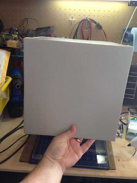 Para hacer la caja que utiliza tablero de base de espuma de plata que encontré en el pasillo de la manía. No es la única manera de hacerlo, pues esto agrega costo y la complejidad a la construcción que no sean necesaria. Fácilmente se puede utilizar un cartón existente que la caja de pintura o cubierta con cinta. En cualquier caso, yo le detalle mi proceso, pero sabe que puede que desee elegir un camino diferente.